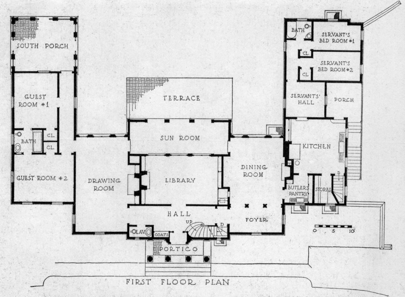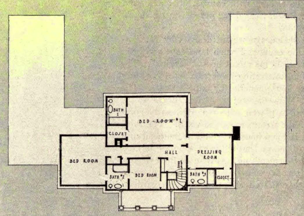 A small curved stairway in the entrance hall ascended to the second-floor owners' suites.